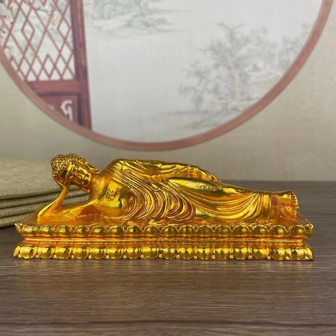 仏教の中でも非常に重要な存在である「涅槃の仏陀」を象った美しいオブジェです。涅槃とは、仏陀が最期を迎え、完全なる悟りに至った状態を示すもので、このポーズは「安らぎ」や「永遠の平穏」を象徴しています。その姿勢は、人生の無常を受け入れた仏陀の教えを伝えており、穏やかな心を育むために理想的なアイテムとされています。
