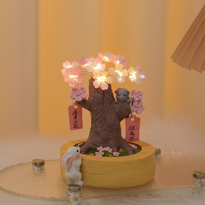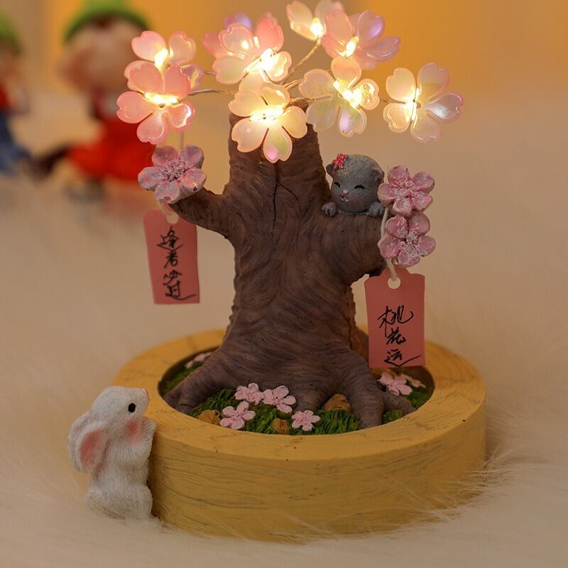 この置物は、ただの装飾品ではなく、あなたの生活空間に穏やかなエネルギーをもたらし、心を癒してくれる存在となるでしょう。電池を入れるとルームライトにもなり、部屋を一層華やかに演出してくれます。桜の花と優しい光が、日々のストレスや疲れを癒す手助けとなり、穏やかな運気を流れ込ませてくれるかもしれません。また、夜に灯る温かなライトが、心地よい癒しの空間を演出し、心身ともにリラックスできる時間を提供してくれるでしょう。