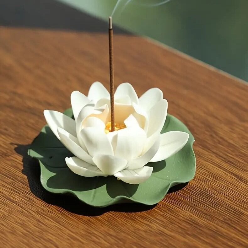 お香を焚くことで、リラックスした空間を作り出し、ストレスを軽減する手助けをしてくれるこのアイテムは、家の中で穏やかな雰囲気を醸し出し、心地よいエネルギーを呼び込むとされています。特に白い蓮の花のデザインは、清浄や純粋さを象徴し、心を浄化してポジティブな思考を促すと信じられており、日々の生活に幸運をもたらすとも言われています。