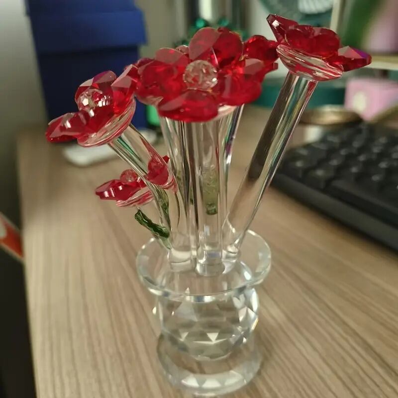 美しい赤い花のデザインが特徴的なクリスタル製の置物です。この花のモチーフは、生命力や情熱、愛情を象徴するものとして、古くから多くの文化で親しまれています。特に赤い花は、恋愛運や家庭の調和、さらには繁栄を引き寄せると信じられています。