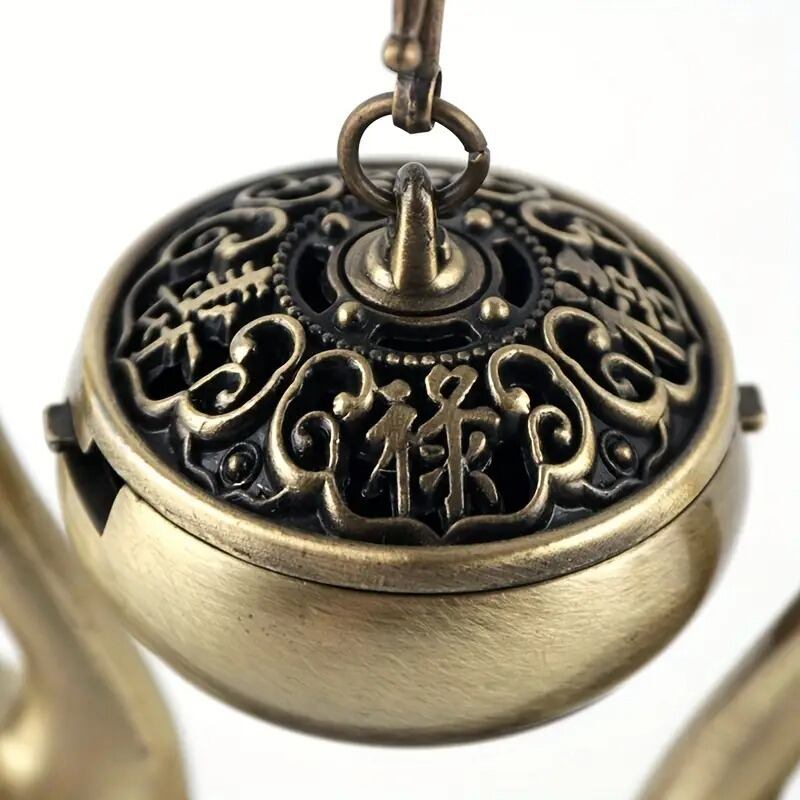 アンティークゴールドの色合いは、金運や繁栄を象徴すると同時に、穏やかな高貴さを感じさせるため、置くだけで空間に優雅で洗練された雰囲気を与えてくれます。この香炉を飾ることで、日常に香りや癒しを取り入れながら、愛や調和、そして金運など、さまざまな面で幸運を引き寄せることが期待できるかもしれません。