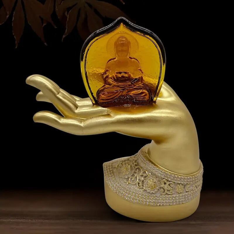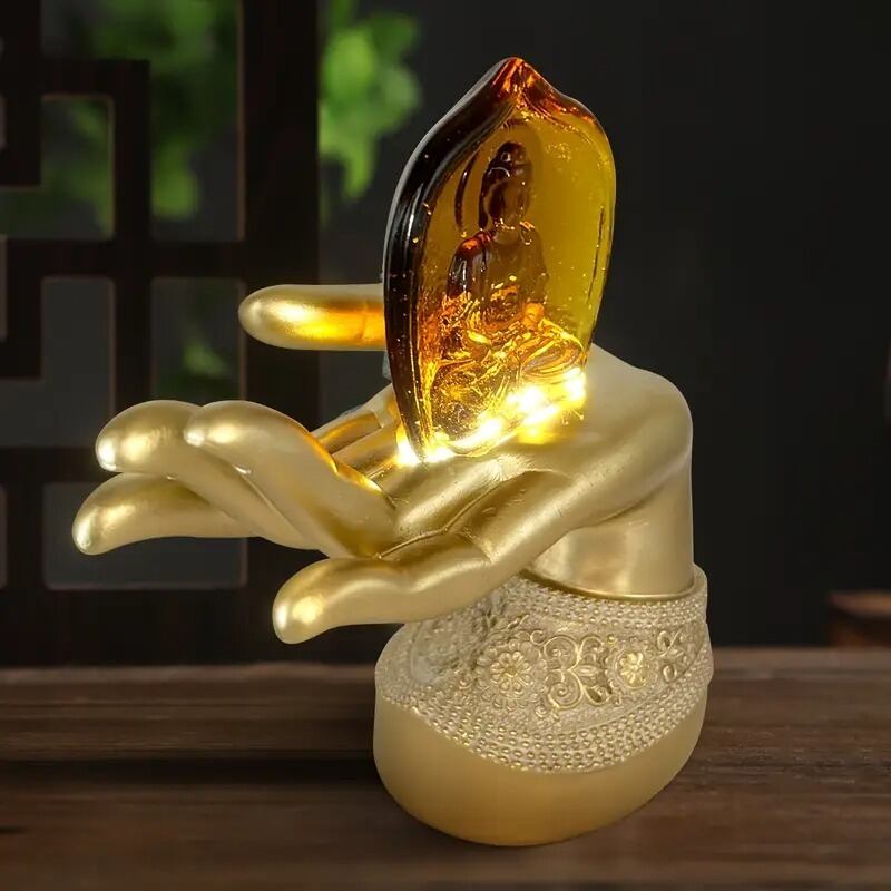 手のひらの上に乗った仏像は、仏の教えが守りと導きをもたらす象徴として、見る者に安心感と心の平穏を与えます。透明な素材で作られた仏像は、その光を反射し、周囲に穏やかな明かりを広げます。この明かりは、日常生活の中で心の安定を求める方々に、精神的なサポートを提供してくれるかもしれません。また、ランプとしての機能により、仏像の持つ「光明」の象徴が一層強調され、空間を温かい光で満たします。