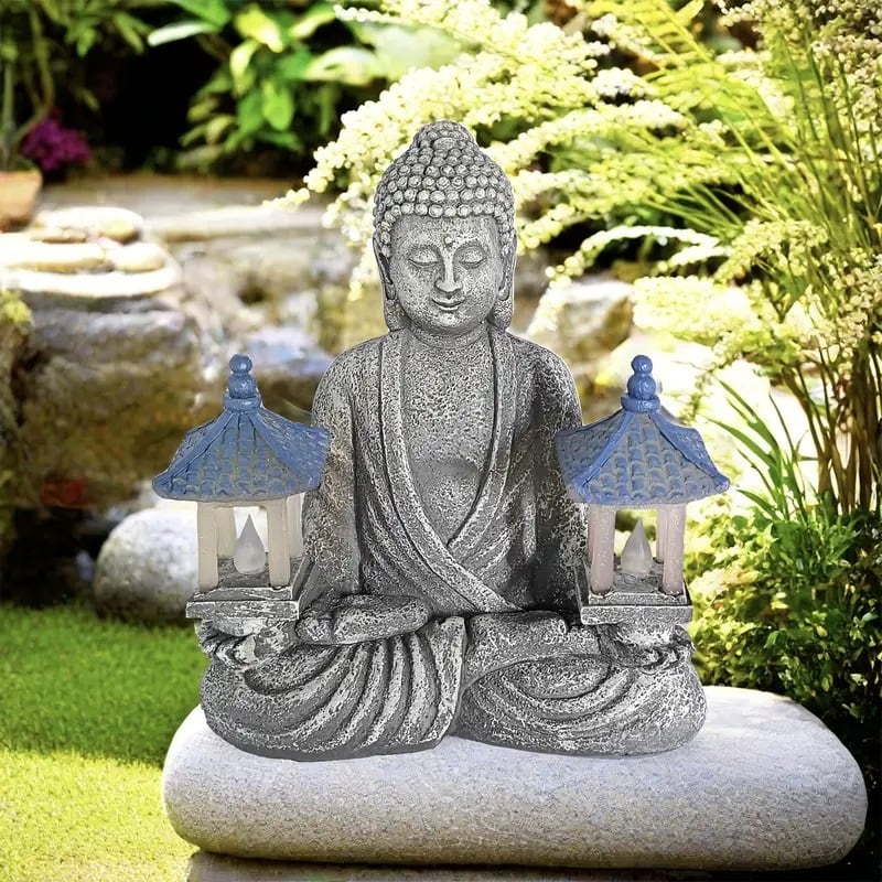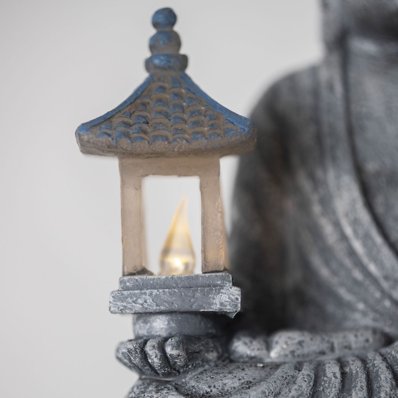 仏教における仏像の美しいデザインにソーラーパワーを活用したランプの機能を融合させた、心温まるアイテムです。仏像の手に灯籠を持たせることで、仏教の「光明」を象徴し、周囲に穏やかで神聖なエネルギーを広げると信じられています。光は、暗闇を照らし、迷いを払い、心を清める力があるとされ、このランプはその象徴となっています。