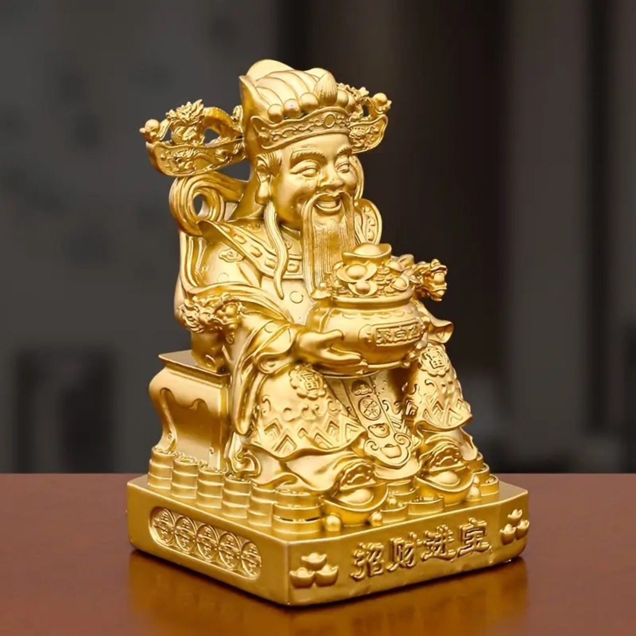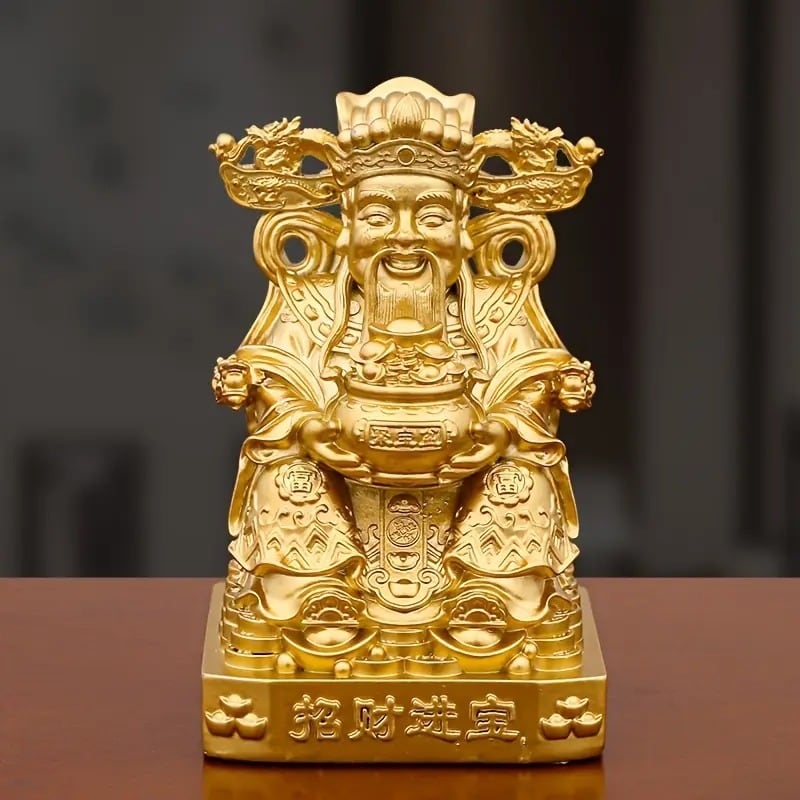 富の神は、商業やビジネス、家庭の財運向上を祈る際にしばしば飾られる存在です。金色は風水においても非常に強力な色とされ、特に財運を高めると信じられています。これにより、日常生活の中で繁栄や成功を象徴するこの置物を飾ることで、金銭的な面だけでなく、精神的な豊かさも育まれるとされています。