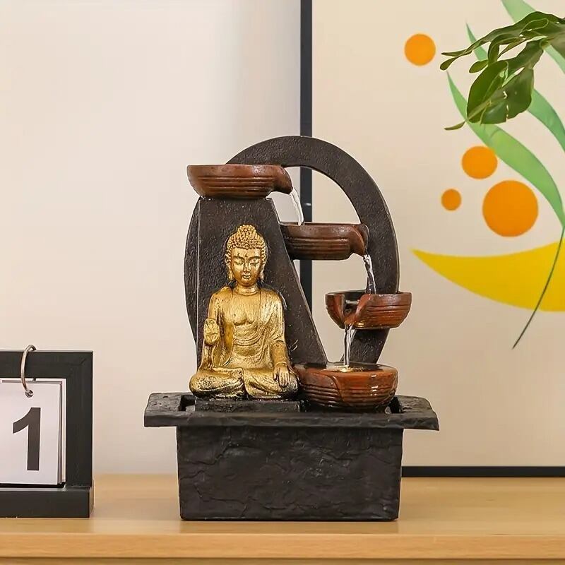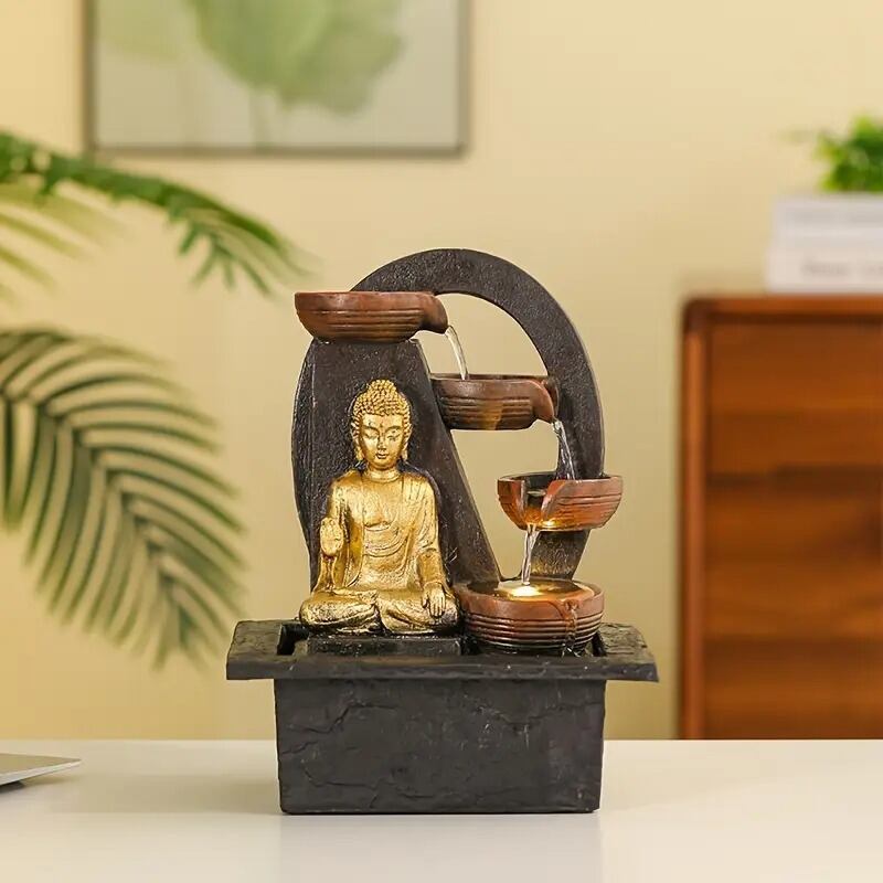 水の流れは風水において「浄化」「繁栄」「運気を高める」とされ、家庭や職場に新しいエネルギーを呼び込むと信じられています。仏像と水の相乗効果により、空間に穏やかなエネルギーをもたらし、リラックスできる環境を作り出します。この噴水は、生活空間に贅沢な雰囲気を加えながらも、静かな祈りのエネルギーを放ち、心身の調和を助ける存在となることでしょう。