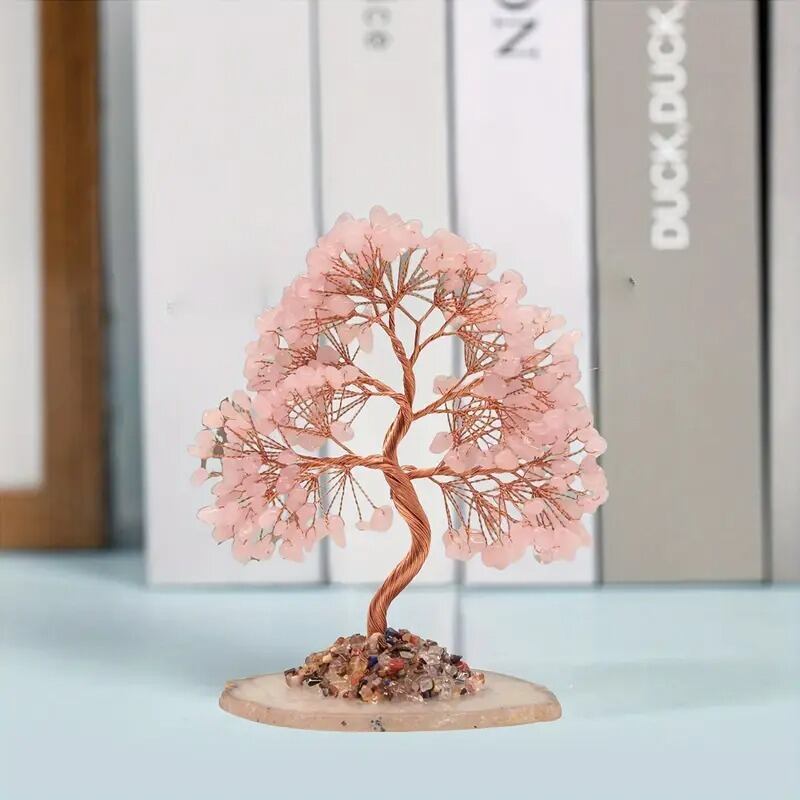 クリスタルツリーは、風水やスピリチュアルな観点から、繁栄や幸運をもたらす象徴的なオブジェです。木の形状は、成長や繁栄を意味し、ツリー全体が根付いた豊かな人生を象徴しています。ローズクォーツのピンク色は、心のエネルギーを高め、穏やかな愛の波動を引き寄せると言われており、家庭やオフィスのインテリアとして飾ることで、心地よいエネルギーをもたらしてくれるでしょう。