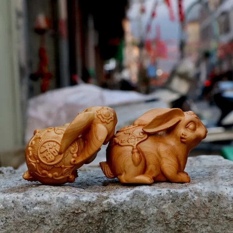 細かな彫刻が施されたこのミニサイズの兎は、その繊細な作りがまるで生きているかのようにリアルで、美しいインテリアとしても魅力的です。どこに置いてもその存在感を放ち、周囲のエネルギーを穏やかに調和させてくれることでしょう。また、コンパクトなサイズでどこにでも飾りやすく、机や棚などにさりげなく置くことができます。
