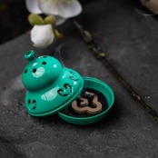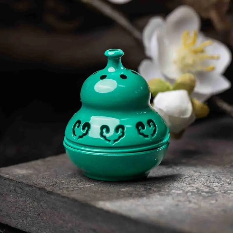 この香炉は、ただのインテリアにとどまらず、空間を浄化し、心を落ち着ける効果を期待できます。お香を焚くことで、ネガティブなエネルギーを払拭し、ポジティブな気を呼び込むと信じられています。グリーンのカラーは、安定と調和を象徴し、特に精神的なバランスを取り戻したい方にぴったりです。また、ひょうたんの優美なデザインは、視覚的にもリラックス感を与え、心地よい空間を演出します。