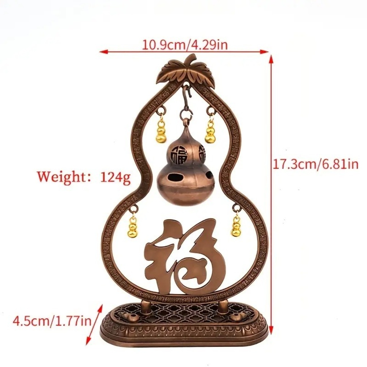 この金属製の香炉は、瓢箪の形を美しく表現しており、風水の観点からも非常に縁起が良いアイテムです。香を焚くことで、空間に清浄なエネルギーをもたらし、心身を落ち着け、ポジティブな気の流れを作り出すことができるとされています。香炉の使用によって、日常生活においても、運気や精神的な安定を促す助けとなるかもしれません。