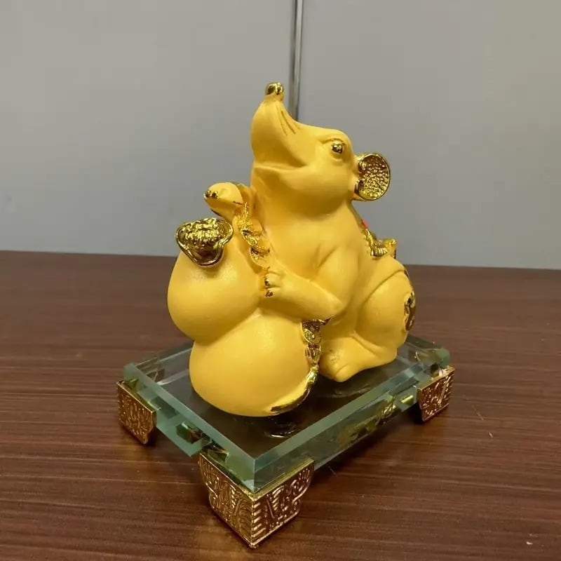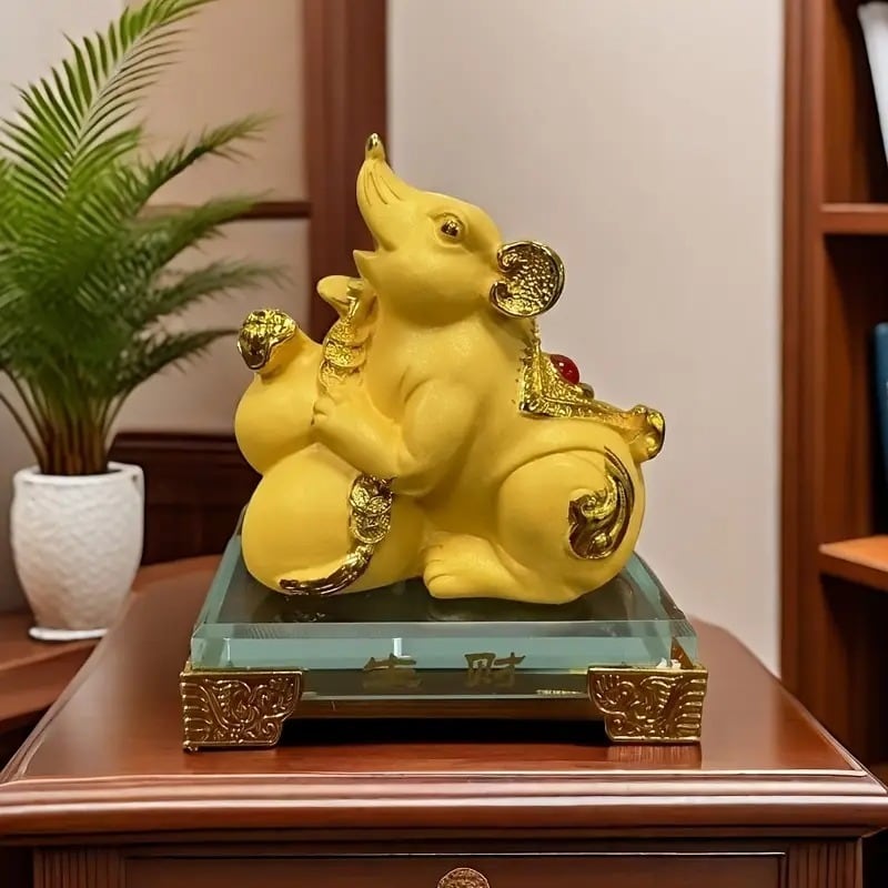 風水では、ネズミは「多くの富を呼び込む」と信じられており、瓢箪はその形状から「邪気を払う」効果があるとされています。この「ネズミと瓢箪 ゴールド 置物」は、金色の輝きがさらに強調され、あなたの運気を高め、生活にポジティブなエネルギーをもたらすと言われています。