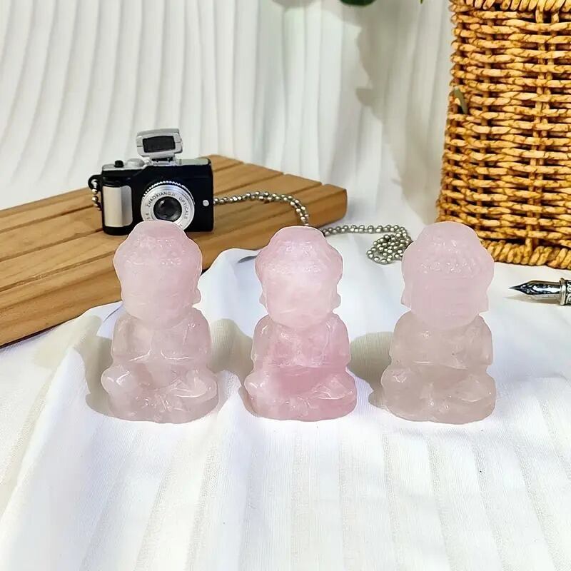 仏像とローズクォーツの組み合わせは、癒しのエネルギーを強化し、あなたの生活にポジティブな影響を与えると言われています。このオブジェを飾ることで、日々の生活に穏やかさや幸福感を取り入れ、心を軽くする助けとなるかもしれません。