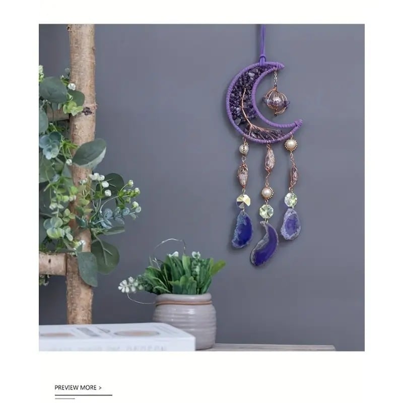 古代の伝統に基づいた美しいアイテムで、心の平穏や良い夢を呼び込むと信じられているオブジェです。ドリームキャッチャーは、ネイティブ・アメリカンの文化から伝わるもので、悪い夢や不安を取り除き、良いエネルギーと幸運を引き寄せる役割を果たすとされています。特に、三日月形のデザインは、月のエネルギーや神秘的な力と結びつき、夢や希望を象徴する存在として愛されています。