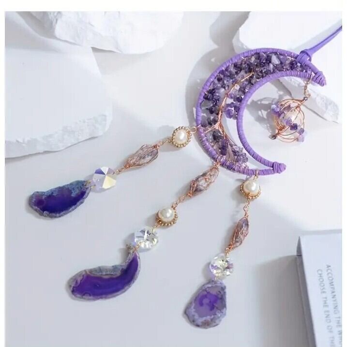 このドリームキャッチャーは、持ち主に穏やかなエネルギーをもたらすと信じられています。紫色は、直感力やスピリチュアルな成長を象徴する色としても知られており、このドリームキャッチャーを身近に置くことで、心の中のバランスを保ち、安らぎを得る手助けになるかもしれません。