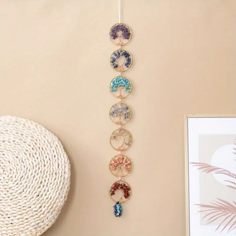 七つの円形は、古来より「完全性」や「調和」を象徴し、人生の各側面(健康、愛、富、幸運、成長、家庭、知恵)がバランスよく循環することを意味します。自然のエネルギーと調和を取ることで、日々の生活に平穏と調和をもたらすと信じられています。このドリームキャッチャーを飾ることで、心の安定を求める方々に寄り添い、ポジティブな影響を与えてくれるかもしれません。