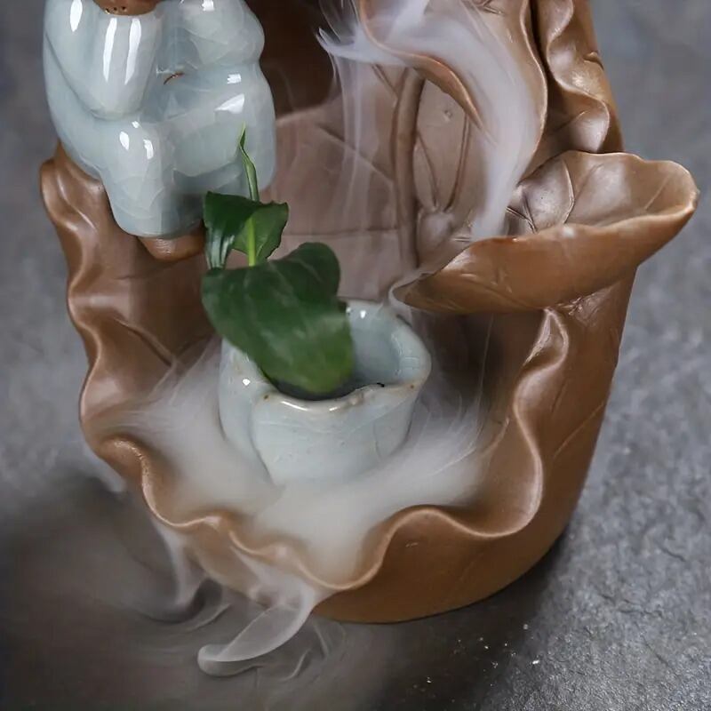 また、和モダンなデザインは、現代的なインテリアにもマッチし、室内空間に洗練された美しさを添えます。坊主の姿に込められた深い意味と、逆流する煙の幻想的な効果が、あなたの生活空間に特別な存在感を与え、豊かなエネルギーを引き寄せる手助けとなるでしょう。日々のリラックスや心の浄化を求める方々に最適なアイテムです。