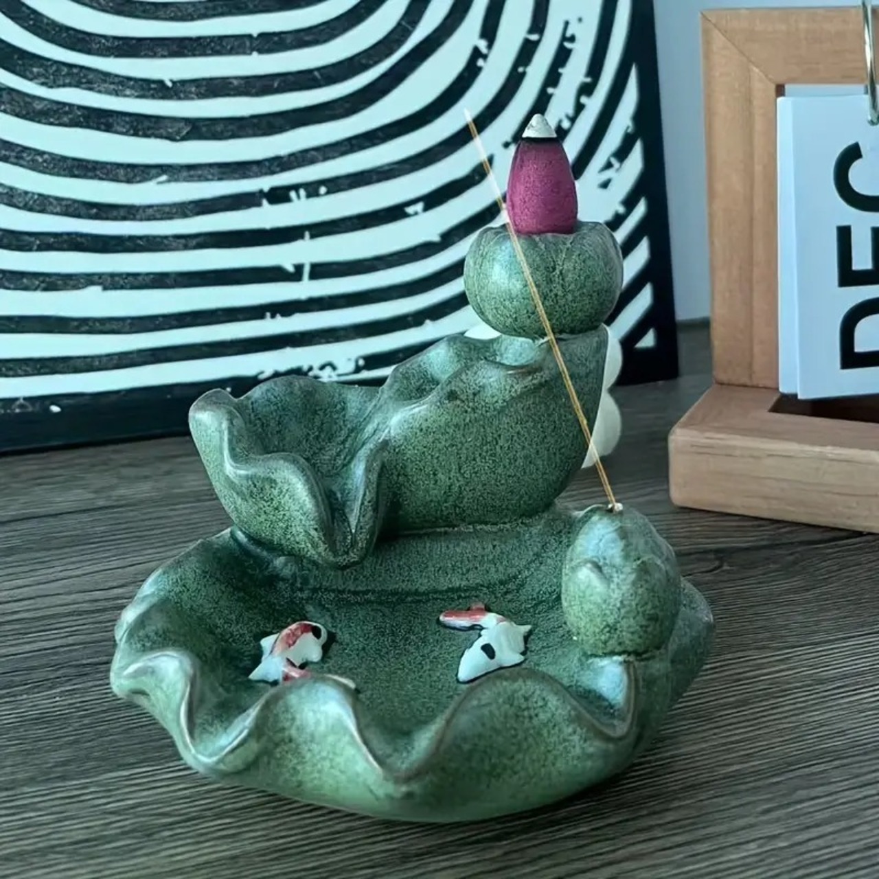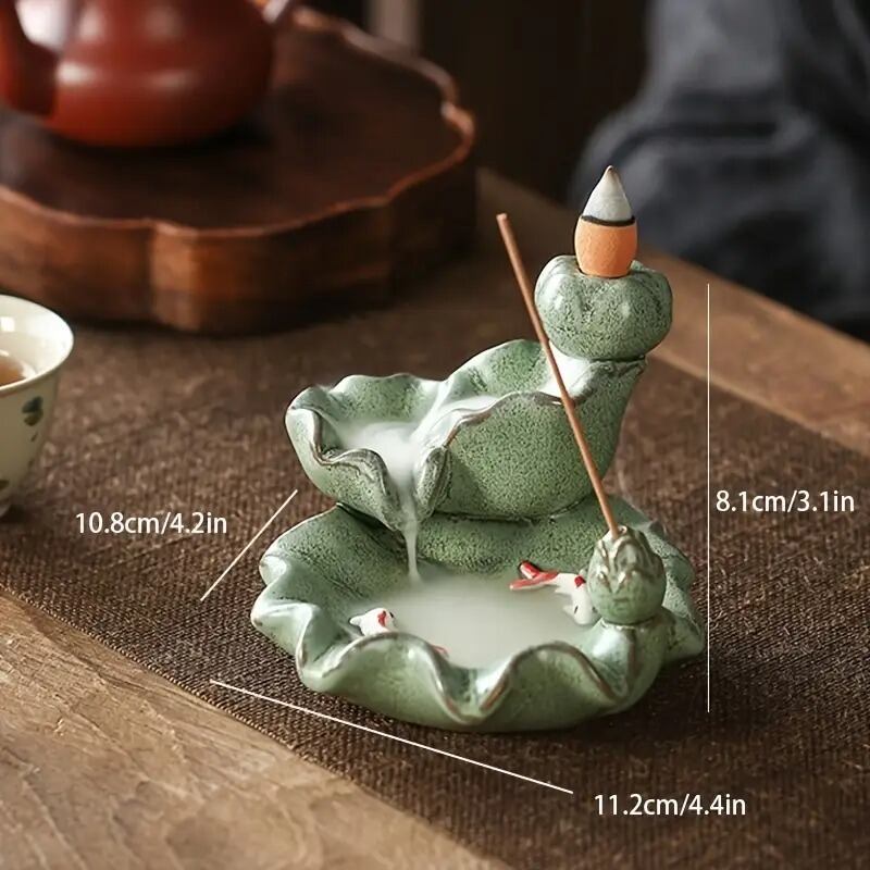逆流香炉 香炉 お香 線香 葉っぱ 葉 グリーン 鯉 コイ 風水グッズ 縁起物 贈り物 プレゼント インテリア 玄関 オフィス 高級感 運 開運 商売繁盛 黄金 リラクゼーション 寝室 | 幸せの置場