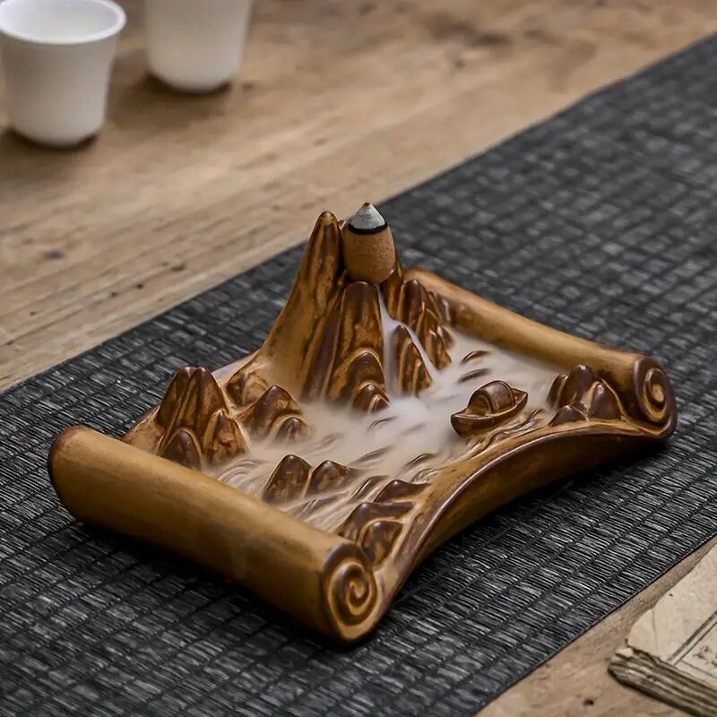 逆流香炉 香炉 お香 線香 山 ブラウン 風水グッズ 縁起物 贈り物 プレゼント インテリア 玄関 オフィス 高級感 運 開運 商売繁盛 黄金 リラクゼーション 寝室 ヨガ リラックス 和モダン | 幸せの置場