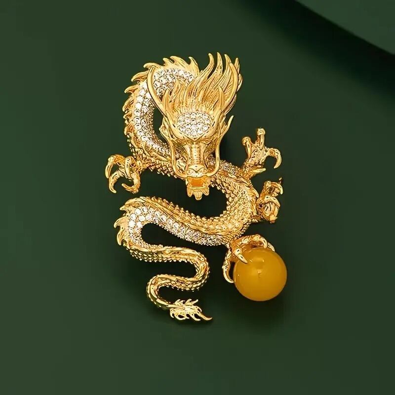 このブローチは、そのドラゴンの力強さを象徴的に表現した美しいアクセサリーです。ゴールドの輝きは、財運や成功を呼び込む色とされ、風水でも非常に重視されています。金色のドラゴンを身につけることで、金運や仕事の成功、さらには人間関係の調和など、さまざまな方面での運気向上が期待されると信じられています。