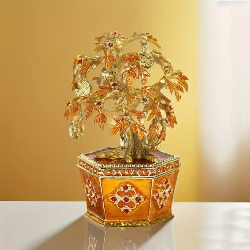 風水やスピリチュアルな意味合いを持つ、繁栄や幸運を象徴するアイテムです。金のなる木は、古来より「金運」や「繁栄」を招くと信じられており、家庭やオフィスに飾ることで、日常生活に豊かさを引き寄せるとされています。この小物ケースは、金属製でありながらも精緻なデザインが特徴で、持ち主の運気を高め、安定した成長を促すと考えられています。