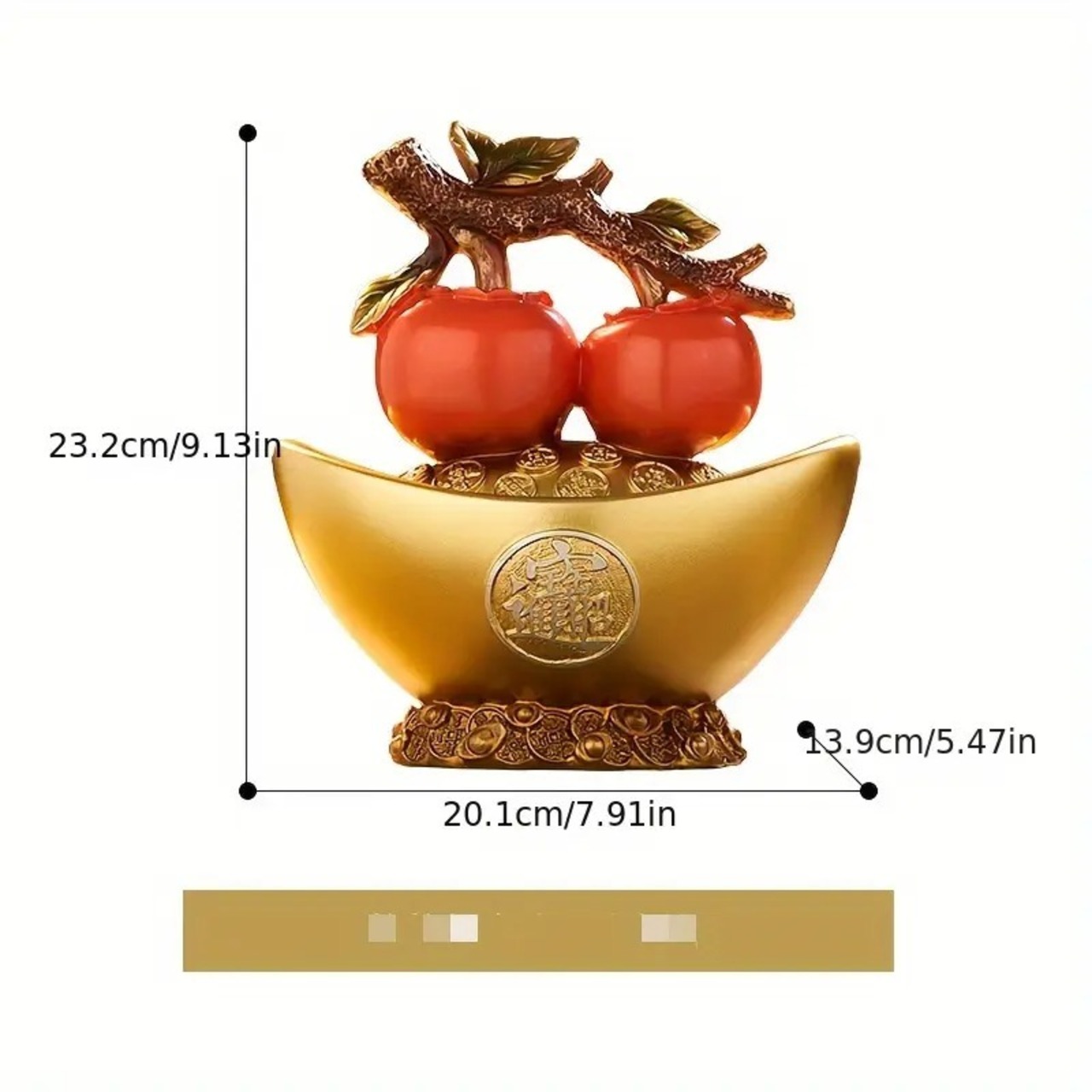 この美しい置物は、金色の元宝とオレンジ色の柿の組み合わせにより、視覚的にも魅力的で、置くだけで空間に華やかなエネルギーをプラスすることができます。風水の観点からも、このオブジェを飾ることで、家庭や仕事場に幸運や繁栄を招くと考えられており、日々の生活にポジティブなエネルギーをもたらす存在となることでしょう。