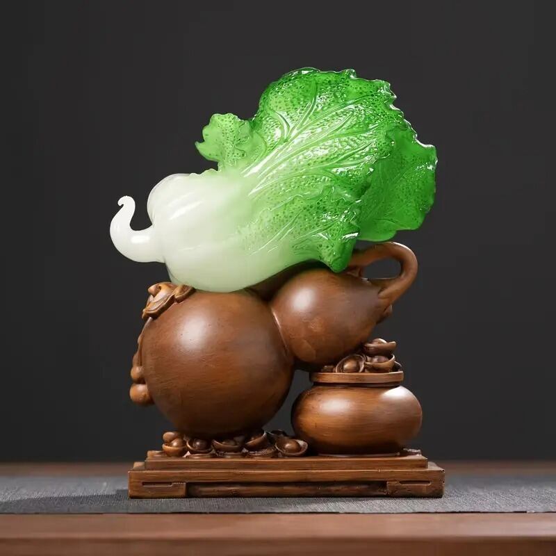 信じられている通り、この瓢箪と白菜の置物が日々の生活にポジティブなエネルギーを与え、周囲の空間に温かさと繁栄をもたらす助けとなるかもしれません。空間に調和を与えつつ、希望に満ちた未来を信じて飾ることができるこのアイテムを、ぜひ手に入れてみてはいかがでしょうか。