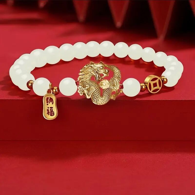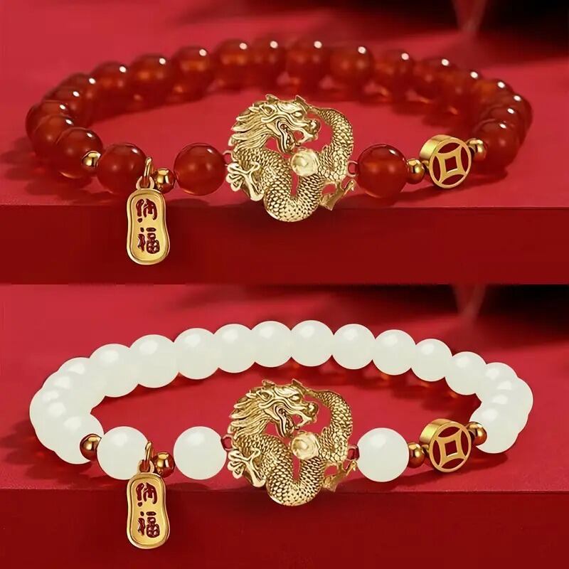 力強さと繁栄の象徴であるドラゴンをモチーフにした、魅力的なブレスレットです。ドラゴンは、古来より世界中で「力」「守護」「知恵」「繁栄」のシンボルとして崇められてきました。特に中国や東洋文化では、ドラゴンは幸運を招き、障害を取り除くと信じられています。そのため、このブレスレットを身に着けることで、身近にドラゴンの力強いエネルギーを感じ、日々の生活にポジティブな影響を与えるかもしれません。