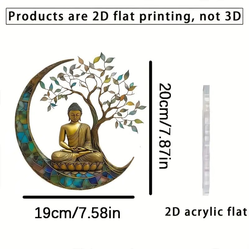 このサンキャッチャーは、アクリル素材にステンドガラス風のデザインを施した美しい仕上がりが特徴です。光を受けることで、まるで色とりどりの光が部屋中に広がり、穏やかなエネルギーが流れ込むような感覚を与えます。仏像の神聖な雰囲気と光の反射が、空間を浄化し、心を落ち着け、リラックスさせる効果が期待できるかもしれません。