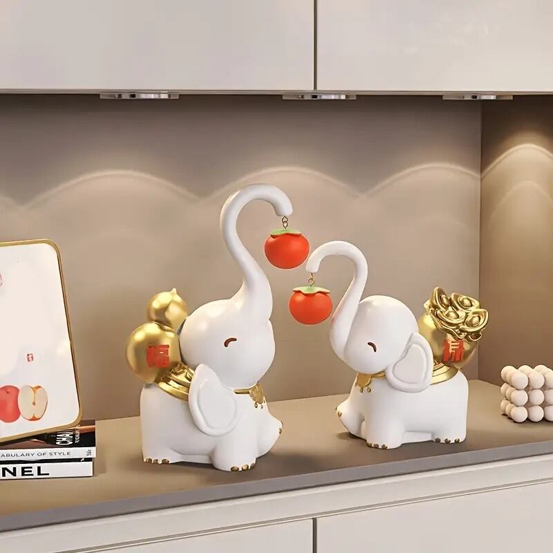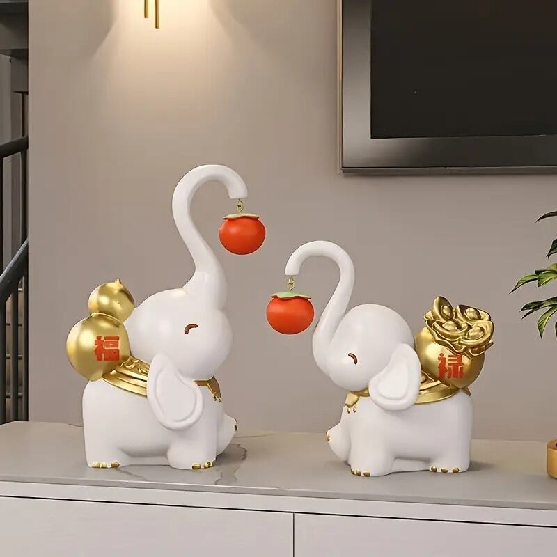 象 ゾウ 置物 オブジェ 柿 カキ 元宝 瓢箪 ひょうたん 2ペア 装飾 富 繁栄 樹脂素材 高級感 運 開運 商売繁盛 オブジェ 置物 インテリア 玄関 リビング 風水 縁起物 贈り物 プレゼント 可愛い | 幸せの置場