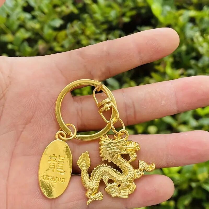 龍 ドラゴン 金 黄金 ゴールド キーホルダー キーチェーン 金龍 風水 開運 縁起 干支 中国 バッグ チャーム 寝室 方角 金 強力 スピリチュアル 店舗 金運 仕事運 健康運 伝統的 高品質 気高い | 幸せの置場