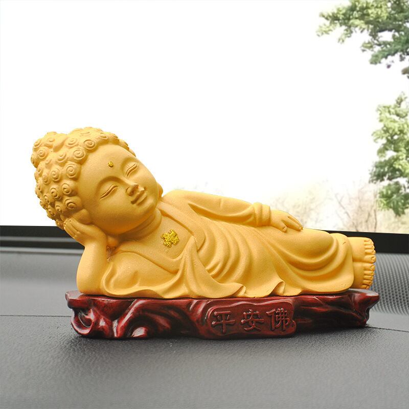 仏教の深遠な教えを象徴する美しいオブジェで、特に心の平和や精神的な安らぎを求める方々に広く信仰されてきました。横たわる姿勢は、仏教における「涅槃(ねはん)」を表しており、悟りを開き、苦しみから解放された穏やかな心の状態を象徴しています。この涅槃の姿勢は、日々の煩わしい悩みやストレスから解放される手助けをすると信じられており、持つ者に心の安定や癒しをもたらすと伝えられています。