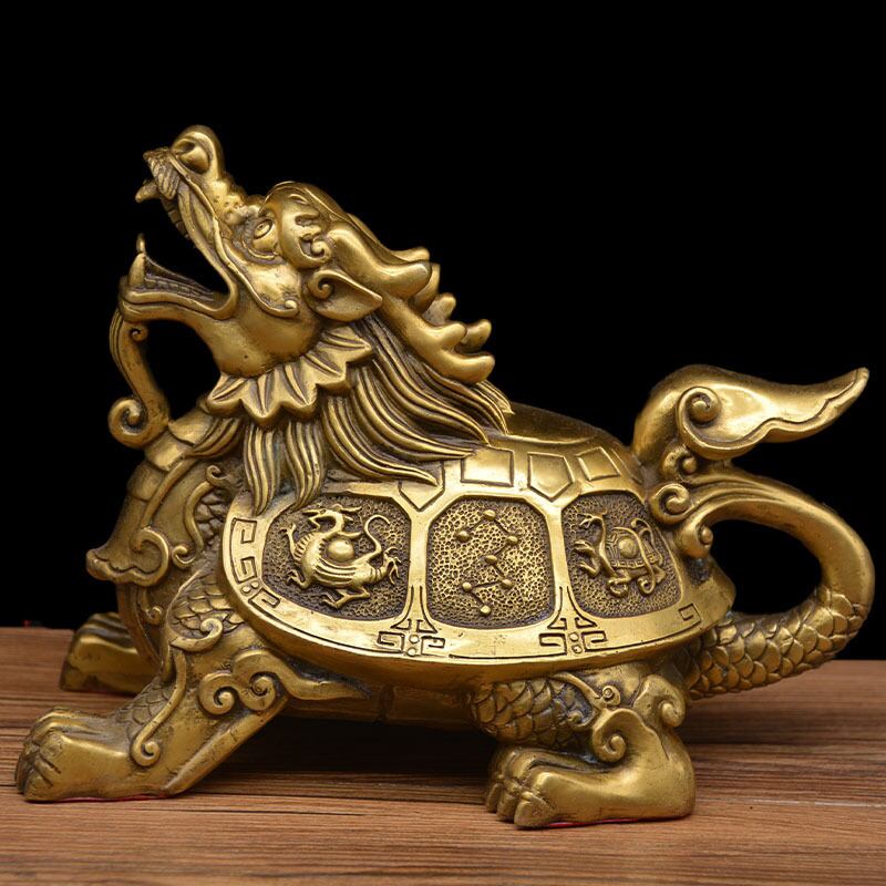古来より風水や中国の伝統で縁起の良いアイテムとして親しまれてきた、龍と亀が一体となった象徴的な置物です。龍は「繁栄」や「力強さ」の象徴、亀は「長寿」や「安定」を象徴する存在とされています。この龍亀の組み合わせは、金運や健康運、さらには家庭の安定を祈願するために最適とされ、古くから多くの人々に信仰されています。