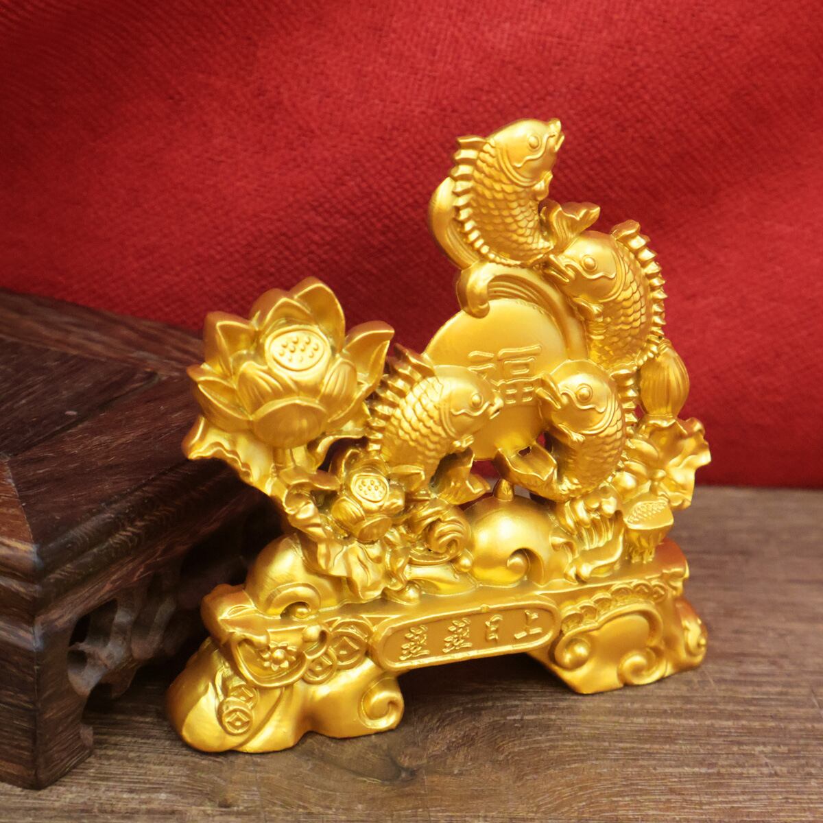 鯛 睡蓮 蓮の花 置物 オブジェ 金色 ゴールド 黄金 優雅 伝統的 運 金運 健康運 出世運 家庭運 家内安全 インテリア 玄関 リビング 贈り物 プレゼント 魔除け オフィス 飾品 幸運 | 幸せの置場