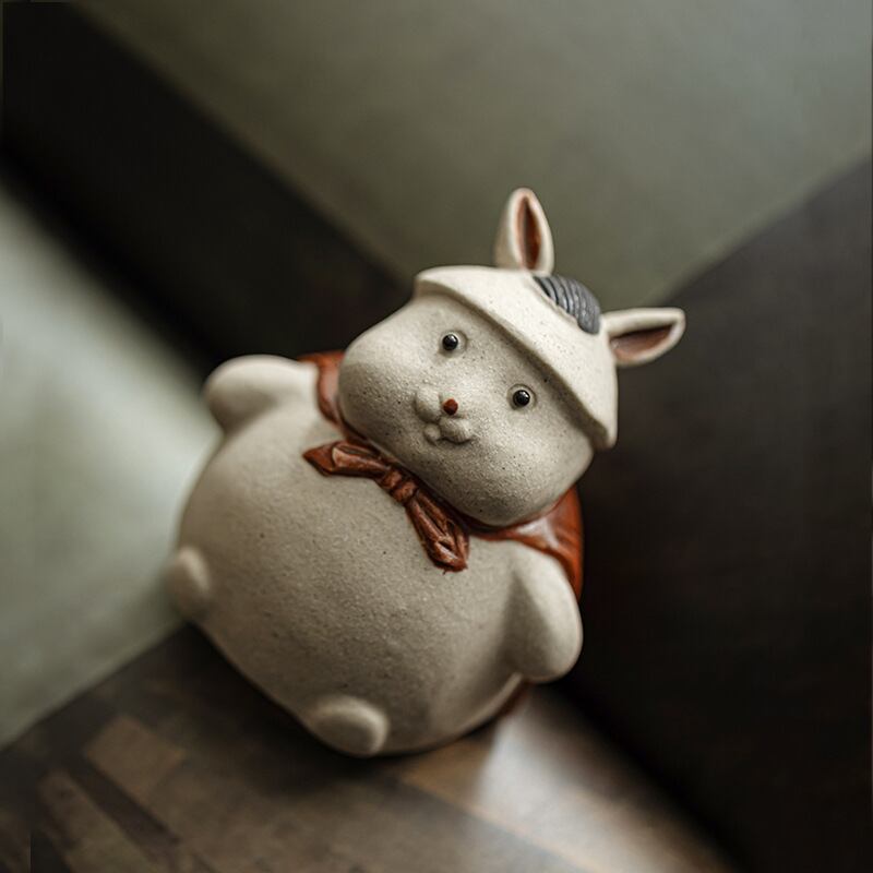 紫砂で作られたこの兎の置物は、優れた手仕事が施され、ホワイトのやわらかい色合いと、丸い体が持つ可愛らしさが、どんな空間にも温かみと安心感を与えてくれます。紫砂は、風水やスピリチュアルな世界では、良い気を引き寄せ、空間のエネルギーを整えると信じられています。そのため、家やオフィスに飾ることで、周囲の運気を高めるお手伝いをしてくれるかもしれません。