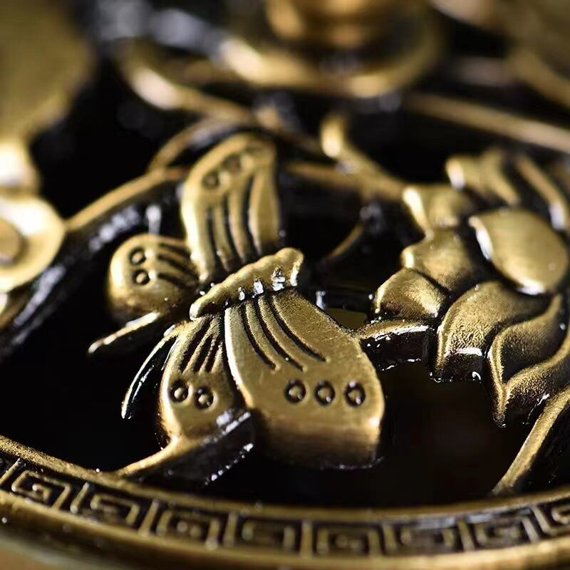 この香炉は、単なるインテリアとしての魅力だけでなく、精緻な彫刻が施されていることで、視覚的な美しさも楽しめます。細部にまでこだわった作りが、その価値を一層高め、空間に優雅な雰囲気を加えます。風水やスピリチュアルに興味がある方々にとって、この香炉は理想的なアイテムであり、日々の生活にポジティブなエネルギーをもたらす手助けとなるかもしれません。