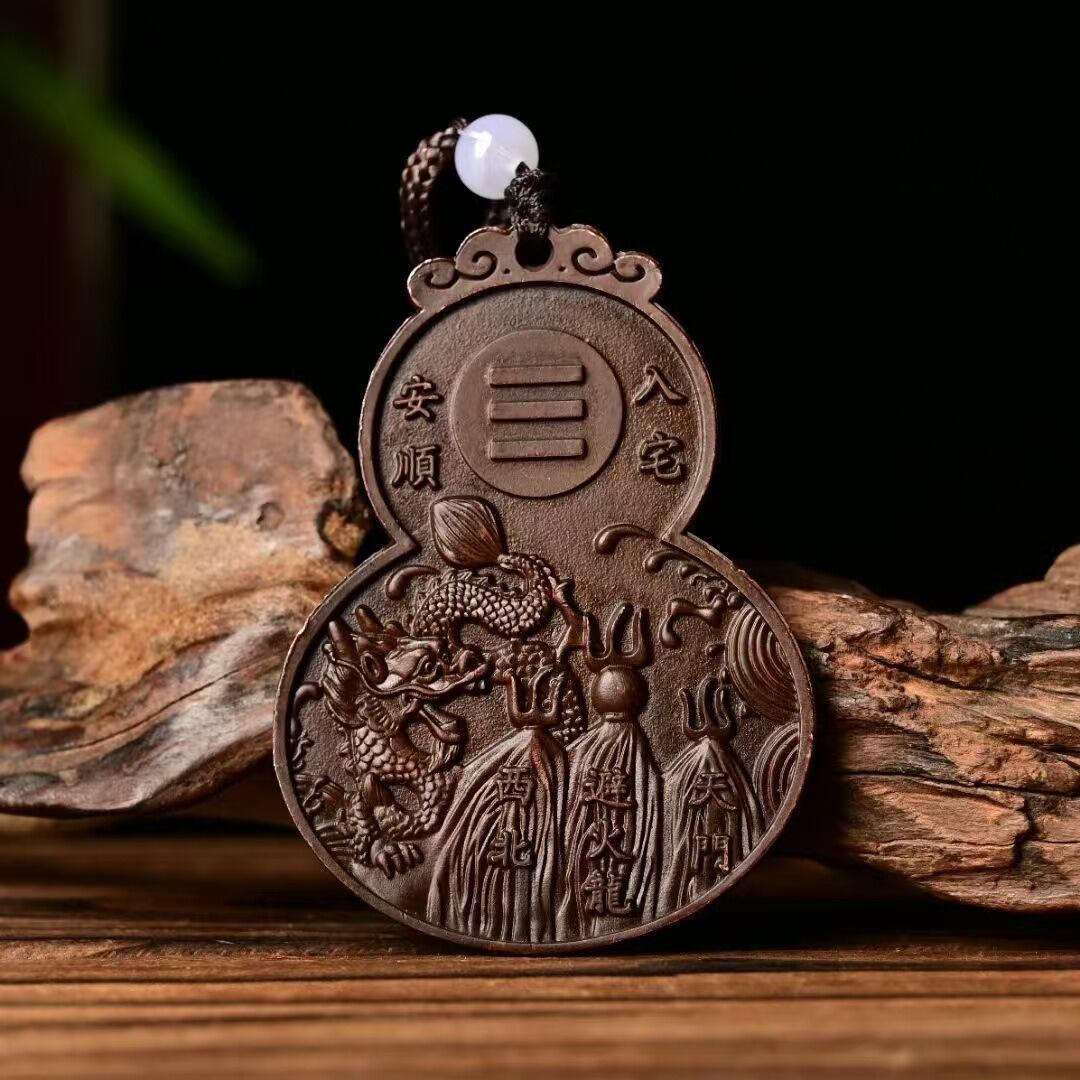瓢箪(ひょうたん)は、古来より**邪気を吸い込み、福を招く縁起物**として親しまれてきました。その独特な形状は「福がたまる」「災いを封じる」といわれ、風水では厄除けや健康運の象徴としても大切にされています。さらに本品は、**八卦(はっけ)**の意匠を融合させた特別なデザイン。八卦は天地・自然のバランスを表し、運気の調和や方位除けのお守りとして広く用いられてきました。