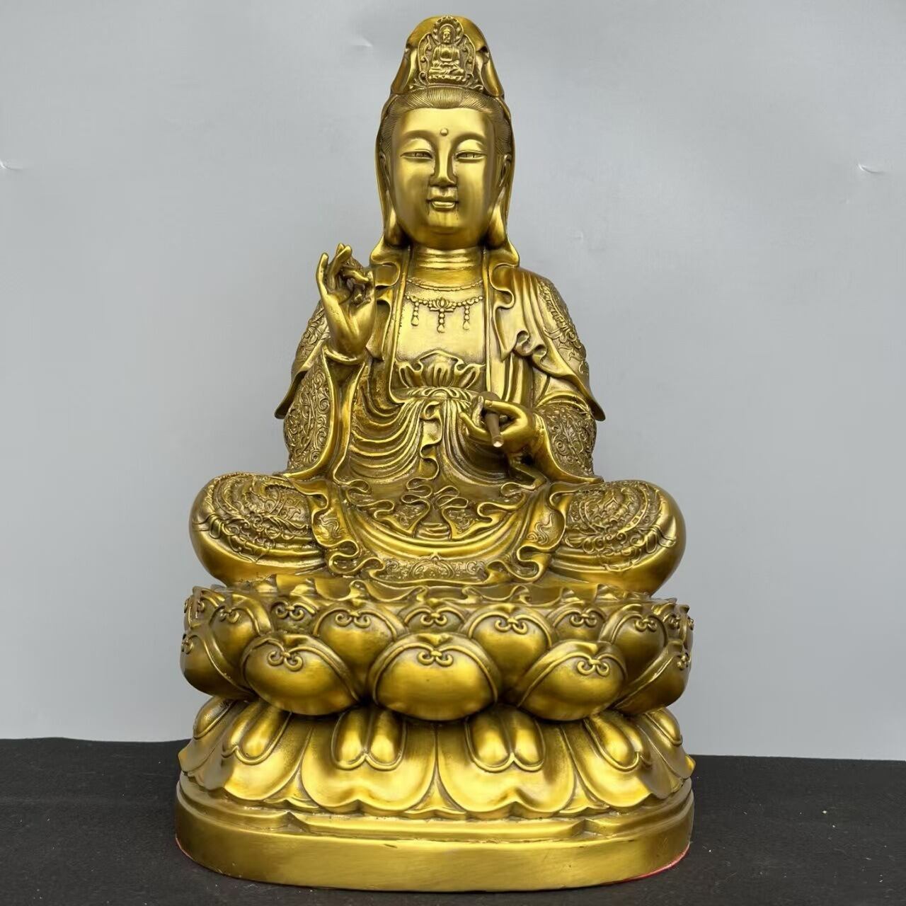 ゴールドカラーに彩られたこの置物は、光を受けるたびに穏やかで神聖な輝きを放ち、空間に神秘的な気配をもたらします。観音菩薩は、あらゆる苦しみや困難を和らげ、心の安寧や人間関係の調和をもたらすと信じられており、特に癒しや安心感を求める方に適しています。
