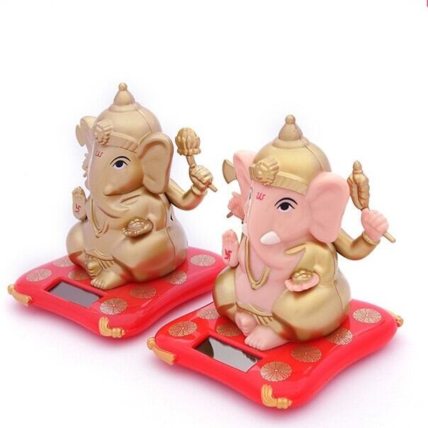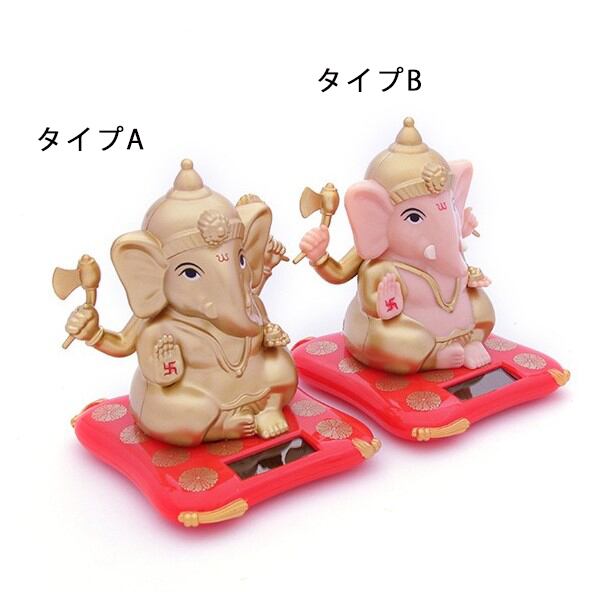 このガネーシャの置物は、金色とピンクの2色展開で、どちらも華やかで優雅なデザインが特徴です。さらに、ソーラー機能を搭載しており、太陽の光で動き続ける姿が、周囲に活力を与え、ポジティブなエネルギーを放つと信じられています。ガネーシャを日常に取り入れることで、運気を向上させ、あなたの努力をサポートする存在となるかもしれません。