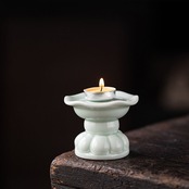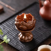 仏前を荘厳に彩る、蓮の花を象った陶瓷製の油灯です。