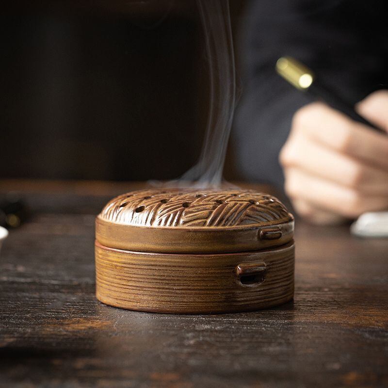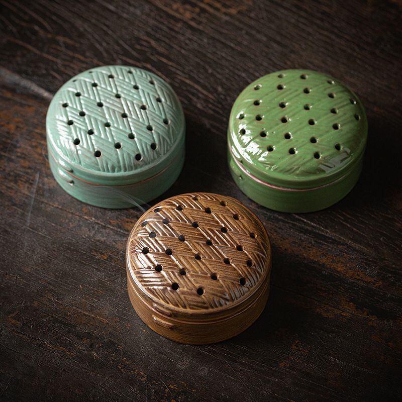 落ち着いた色合いと繊細な透かし模様が美しい、陶磁器製の蒸し香炉です。丸みを帯びた優しいフォルムと、ふんわりと広がる香りが、室内に穏やかな癒しの時間をもたらします。