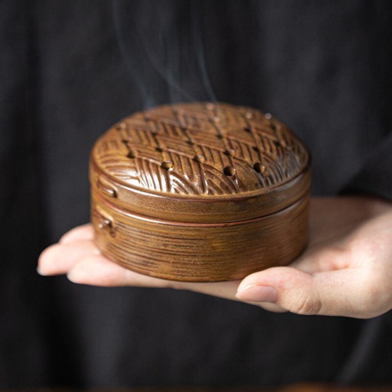 蓋には細かい穴が施されており、香りが均一に広がる設計。コーン香、チップ香、抹香などさまざまなお香に対応でき、手軽に日常へ取り入れられます。シンプルながらもどこか懐かしさを感じるデザインは、リビングや書斎、寝室など場所を選ばず、どんなインテリアにも調和します。