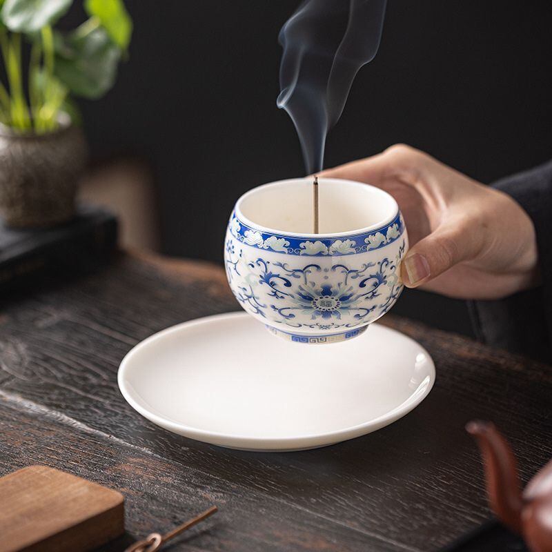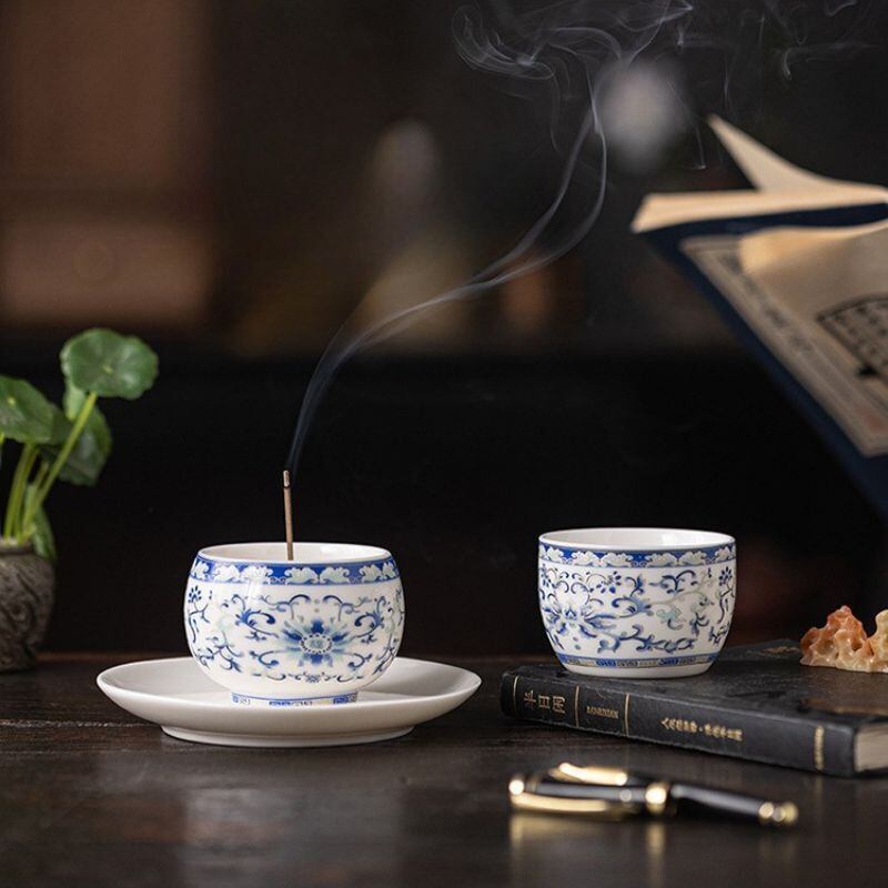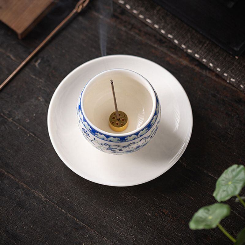 線香を立てて焚けば、ゆるやかに立ちのぼる煙とともに空間が和やかに整えられ、心身のリラックスや気持ちの切り替えに役立ちます。仏前に供えるのはもちろん、読書やヨガ、瞑想などの静かなひとときのお供としてもおすすめです。特に青花磁の柄は、シンプルなインテリアにも馴染みやすく、置くだけで上品なアクセントになります。