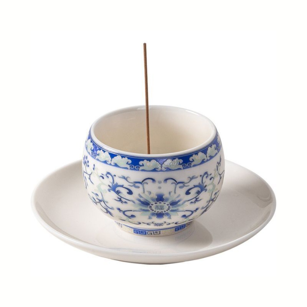 香炉 青花磁 線香 青花 風水 置物 線香立て お香立て 吉祥 清め 風水置物 開運 縁起物 スピリチュアル 浄化 瞑想 ヨガ 癒し雑貨 リラックス 室内用 アロマ置き 骨董調 おしゃれ 白 ホワイト 開運グッズ 運勢アップ | 幸せの置場