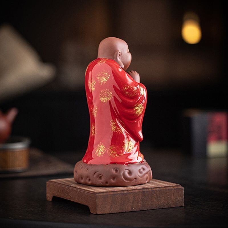 赤い衣をまとった姿は、生命力や情熱を表す色合いで、風水では強力な開運の象徴とされています。さらに金色の小判を手にしている姿は「財を招く」「金運を高める」意味を持ち、家庭や事業における繁栄を願う縁起物として最適です。