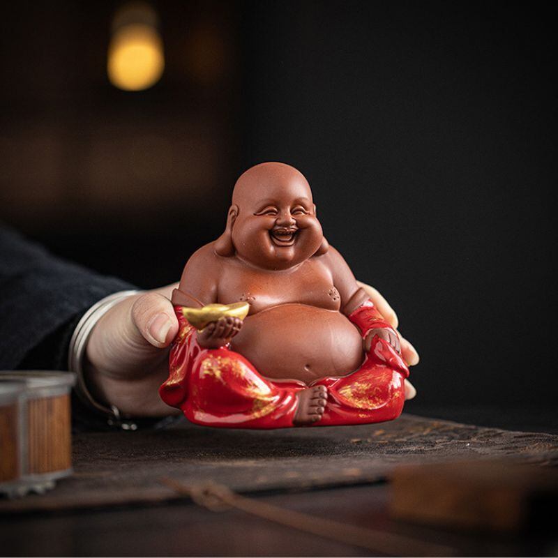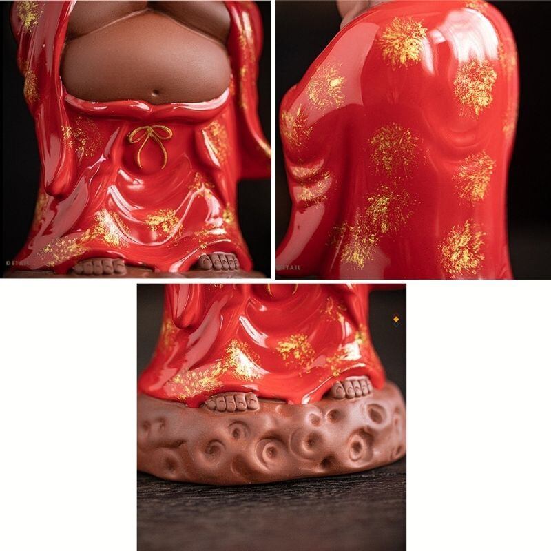 布袋尊 七福神 置物 台座付き 仏像 縁起物 風水 開運招福 商売繁盛 金運 赤衣 福禄寿 福徳円満 笑佛 玄関飾り 書斎 オブジェ オフィス インテリア 飾り 強運 風水グッズ 運勢アップ | 幸せの置場