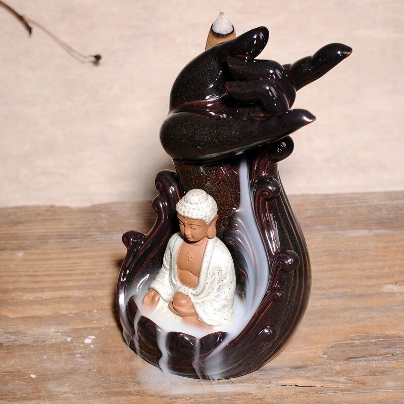 香炉 倒流香炉 蓮花 仏手 蓮 蓮の花 コーン型 インテリア 観音菩薩 如来 開運 仏像 オブジェ 風水 陶器 線香立て お香 おしゃれ 和風 モダン リバースインセンス 癒し 浄化 仏教 禅 飾り運気アップ 気 縁起物 邪気払い リラクゼーション | 幸せの置場