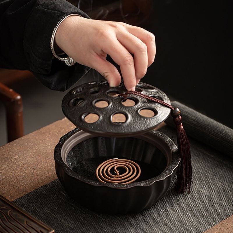 この蓮華香炉を茶席や玄関、リビングなどの落ち着いた場所に置いてみてください。風水では、蓮のモチーフは気の浄化と運気の向上につながると言われています。清らかな力を持つモチーフと癒やしの香りが合わさることで、お部屋の空気と雰囲気を整え、運気の流れを良くしてくれることが期待されます。