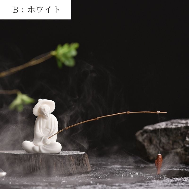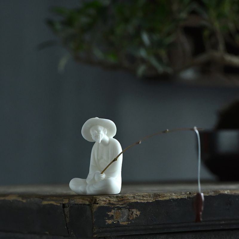 釣り人 仙人 置物 ミニチュア 陶器 風水 大器晩成 成功 縁起物 思慮 和モダン 禅 インテリア 書斎 デスク 心の余裕 人生の転機 贈り物 和み 前向き 仕事運 静寂 お守り 白磁 茶寵 ストレス解消 おしゃれ 雑貨 | 幸せの置場