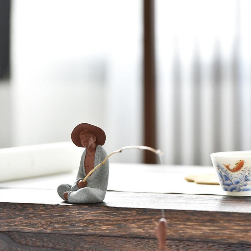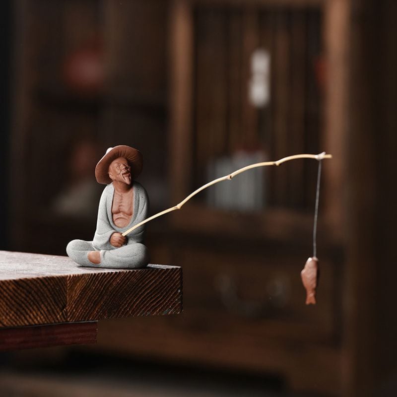 このミニチュアを仕事のデスク、書斎、またはリビングなどの目の届く落ち着いた場所に飾ってみてください。風水では、思慮深く静かなモチーフは、運気の流れを穏やかに整え、人間関係や仕事運における成功を後押ししてくれることが期待されます。小さな台座に乗せて飾ると、まるで霧の立ち込める水辺で釣りをするかのような幻想的な情景が生まれ、瞑想的な空間を演出できます。
