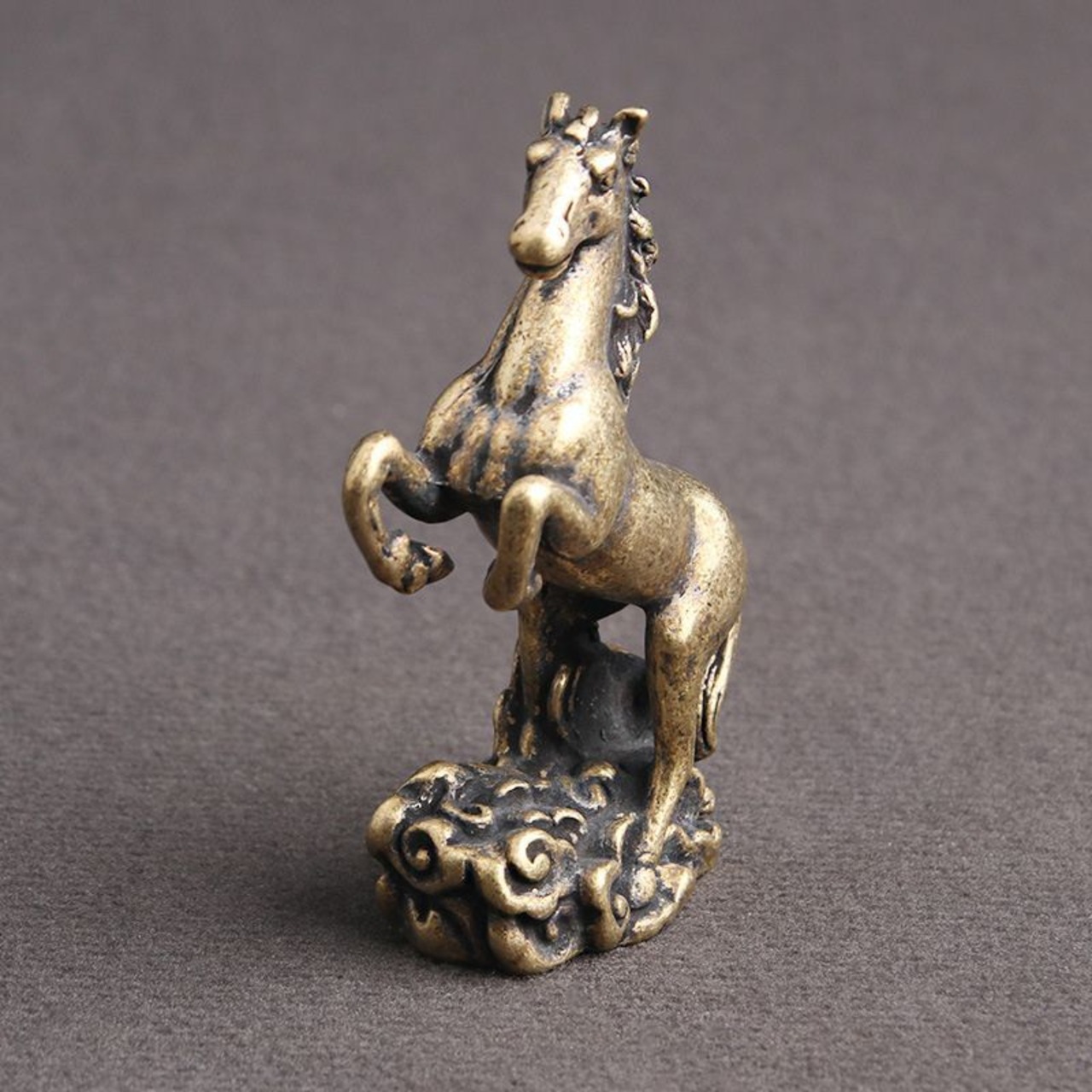 真鍮の深い輝きと、精巧に表現された馬の筋肉、そして雲を蹴立てるようなその姿は、あなたの日常に活気と希望をもたらし、あなたの人生の転機を力強くサポートしてくれるお守りとなってくれることを心より願っております。この馬との出会いが、あなたの未来を大きく飛躍させるきっかけとなりますように。