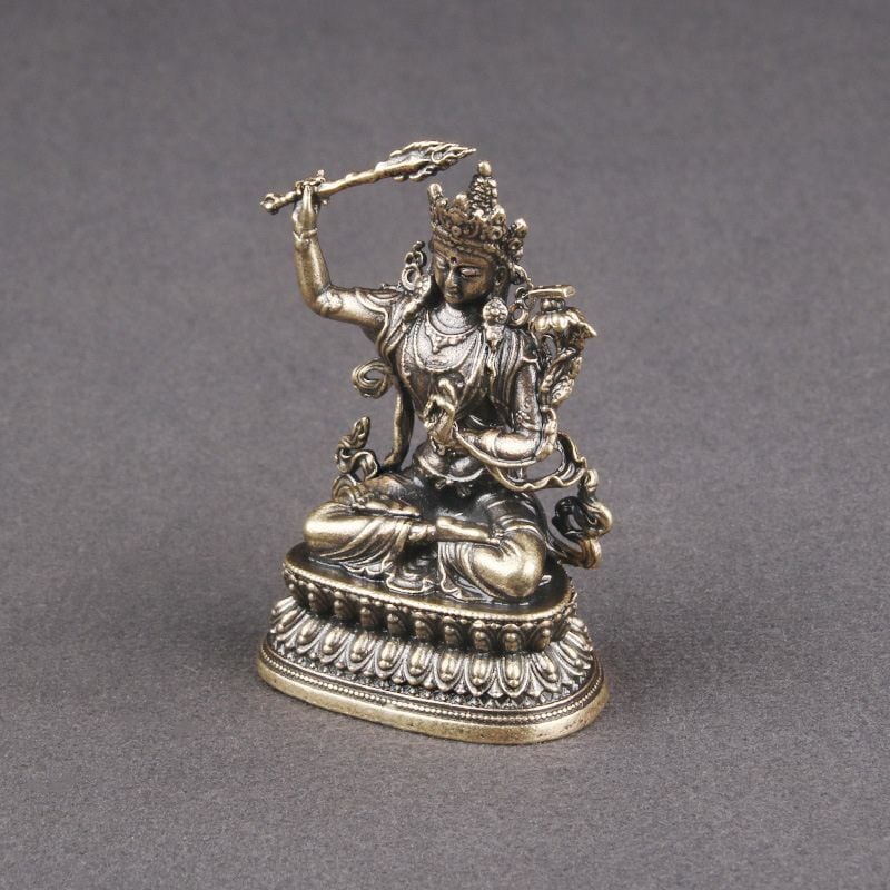 文殊菩薩像 菩薩 仏教 智慧の剣 坐像 置物 仏像 学業成就 合格祈願 厄除け 開運 悟り 集中力アップ お守り デスク 縁起物 真鍮製 アンティーク調 小物 雑貨 インテリア ミニチュア ミニサイズ | 幸せの置場